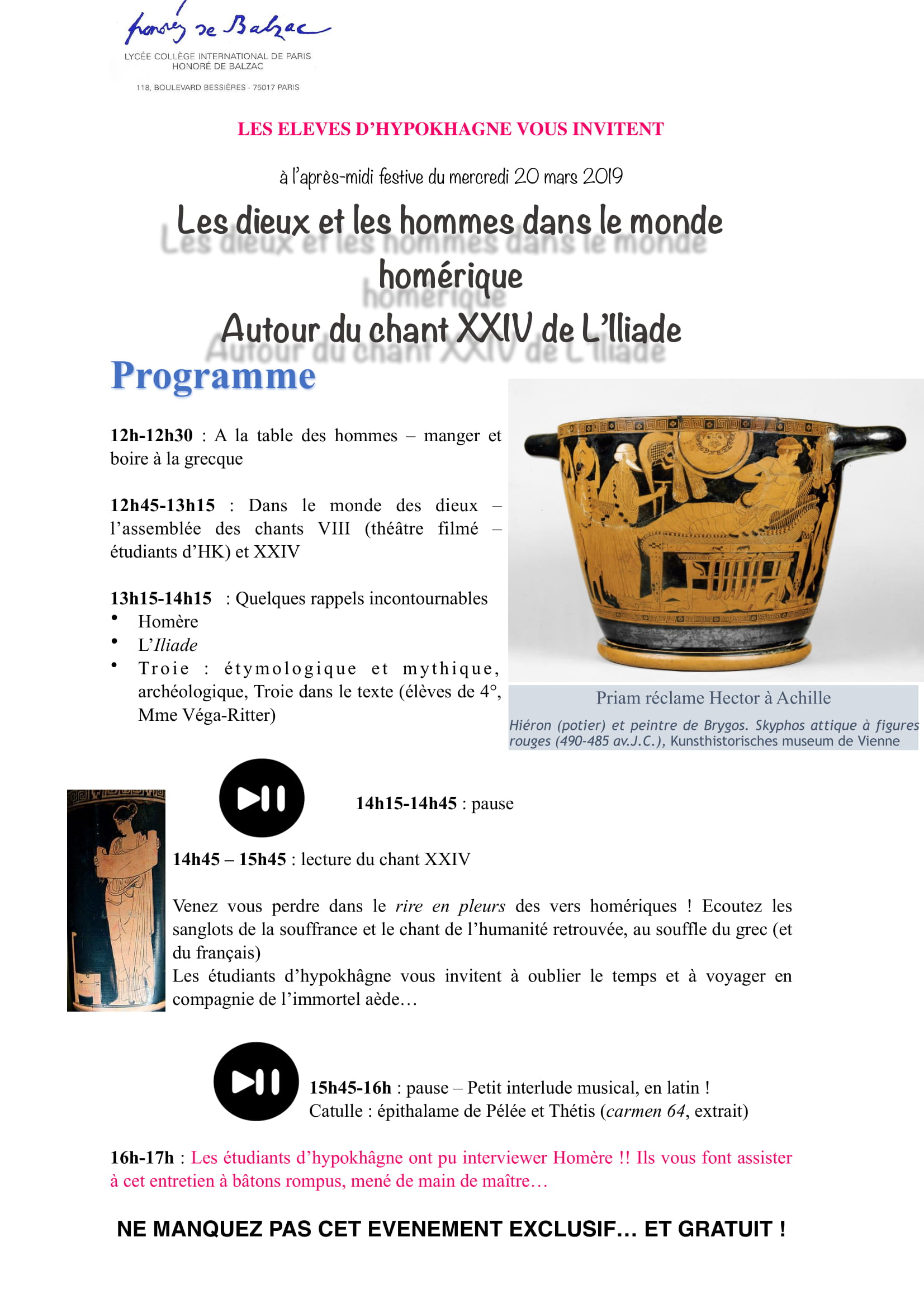 Mercredi 20 mars 2019 : Après-midi festive autour de l'Iliade (Chant XXIV)