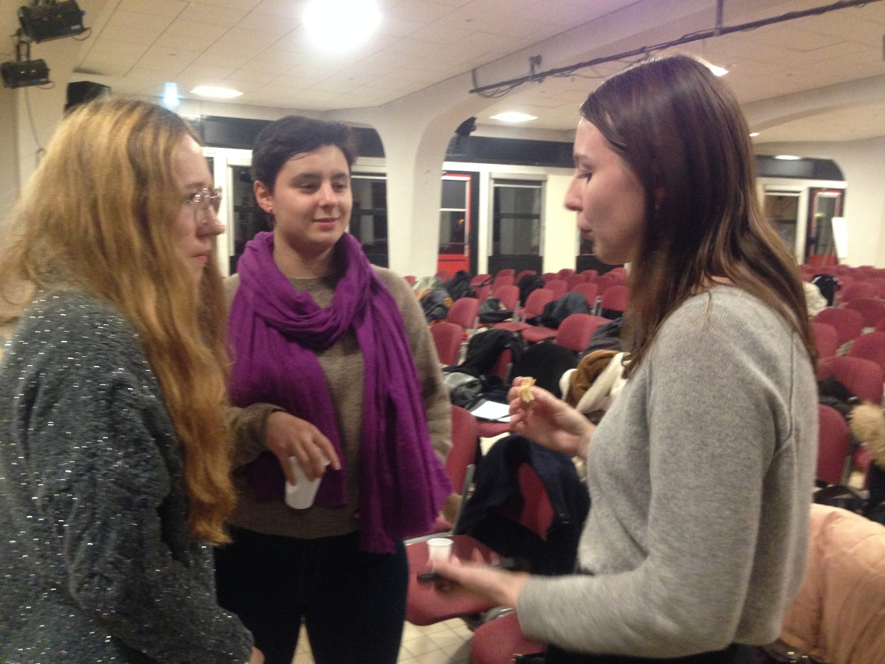 Tous les élèves actuels, Hk et Kh, ont pu dialoguer avec d'anciens élèves autour d'un pot dans la salle des fêtes. Une quarantaine d'"anciens" ont répondu à l'appel de leurs anciens professeurs - certains ont promis de venir la prochaine fois - et la diversité des parcours post-prépa littéraire était impressionnante. "C'est rassurant", ont dit plusieurs Hypokhâgneux ensuite, "ils font des choses qui ont l'air de les passionner et on voit qu'eux non plus ne savaient pas forcément vers où aller au départ!" "On sent que la prépa c'est une bonne plate-forme, mais ensuite il y a encore beaucoup à découvrir." "En fait les choses ne sont pas du tout figées..."